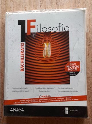 Libro de Filosofía de 1° de Bachillerato en perfecto estado, está forrado y solo tiene algunas marcas a lápiz. No está pintado, ni subrayado, ni dibujado. Está prácticamente nuevo.
