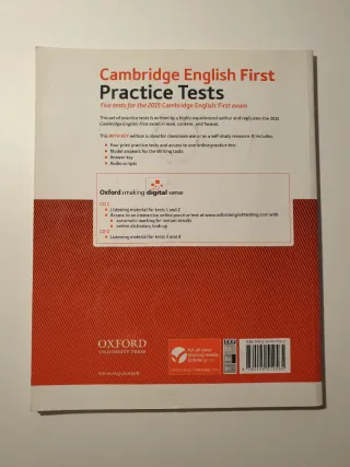 Libro para practicar para el First Certificate of Cambridge en perfectas condiciones, sin escribir, con los cd’s intactos.