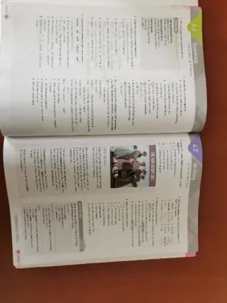 Libro de texto de inglés con algunos defectos en las esquinas.
