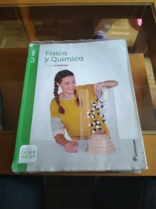 Libro de texto de tercero de la eso de física y química. Se encuentra desgastado, pero las hojas en su interior se encuentran libres de pintadas y subrayados.