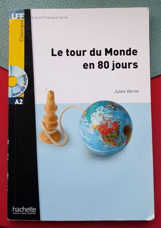 Ejemplar del libro 'Le tour de Monde en 80 jours', en Francés, de Jules Verne/Julio Verne, usado como lectura en 3º ESO en el IES Sagasta (Logroño) en la asignatura de Francés como lengua extranjera. Incluye CD. Editado por Hachette. Escrito en Francés.