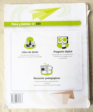 Física y Química 3° ESO. En muy buen estado. Pocas páginas escritas a lápiz. Entrego en Barcelona