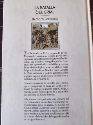 Después de la batalla de Crécy (1346), episodio central de la primera entrega de este ciclo narrativo, Thomas de Hookton es enviado por el rey de nuevo a Inglaterra, donde los escoceses, a petición de los franceses y aprovechando la merma de las defensas, han invadido el norte del país provocando la que pasará a la historia como la batalla de Neville's Cross y en la que homas se ve envuelto a su pesar. Eso no impide que siga su peregrinaje en busca del Grial, que le llevará de vuelta a su pueblo natal y a Francia, donde asistirá a otra batalla memorable: la de La ROcheDerrien, en la que Carlos de Blois fue derrotado y hecho prisione