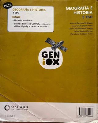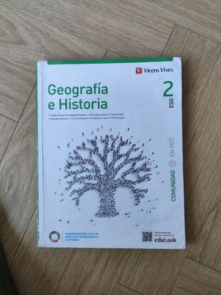 Libro de texto geografía e historia 2do ESO(está subrayado con lápiz en algunos temas) forrado