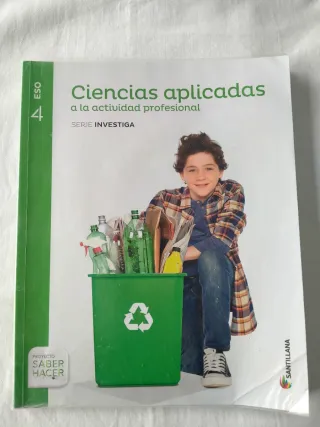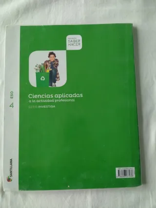 Vendo libro de ciencias aplicadas para 4 ° ESO, editorial Santillana, proyecto saber hacer, serie investiga, ISBN 9788468037936, subrayado conceptos de algunas páginas pero bien conservado, forrado, hago envíos y preparo lotes, precio 1 euro.