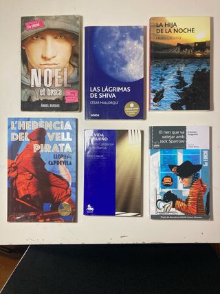 Lot de llibres juvenils i escolars (6 llibres) Conjunt de 6 llibres de lectura juvenil i educativa, ideals per a ESO, reforç escolar o lectura personal. Tots els llibres són usats, amb algunes marques d’ús normals, però en bon estat general. Inclou els següents títols: • Noel el busca – Àngel Burgas • Las lágrimas de Shiva – César Mallorquí • La hija de la noche – Laura Gallego • L’herència del vell pirata – Llorenç Capdevila • La vida es sueño – Pedro Calderón de la Barca • El nen que va xatejar amb Jack Sparrow – Francesc Puigpelat Es ven tot el lot junt per 20 eur, i també per separat (5 eur cada un per separat)