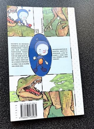 Nachete ha decidido fundar el club de los dinosaurios, y todos los que quieran participar tienen que aportar algo. Pupi no sabe qué hacer y por eso está muy triste, hasta que ve a Conchi preparar la cena y se le ocurre una gran idea. Un libro de Pupi, el extraterrestre azul, con grandes dosis de humor y alegría.