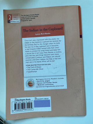 Vendo el libro “The Indian in the Cupboard”, Burlington Activity Reader, en inglés. Lectura adaptada para estudiantes, con actividades para mejorar vocabulario y comprensión lectora. Libro ideal para ESO / aprendizaje de inglés. Está en buen estado, con posibles marcas normales de uso (ver fotos). 🔹 Título: The Indian in the Cupboard 🔹 Editorial: Burlington Books 🔹 Idioma: Inglés 🔹 Tipo: Activity Reader 🔹 Estado: Bueno Se vende por no usar. Entrega en mano o envío por Wallapop.