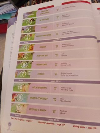 Libro de inglés spectrum, editorial oxford, workbook, tiene algunas hojas escritas