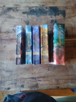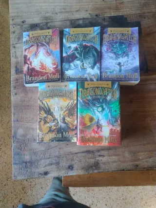 coleccion completa de dragonwatch en ingles es un libro de fantasia es la segunda de una serie despues de fablehaven hay 5 libros estan muy usados leidos varias vezes pero es una historia muy buena. hay 1 tapadura pero la resta son normales