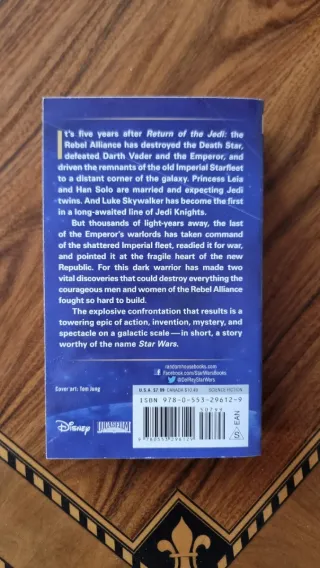 Star Wars – Heir to the Empire (Timothy Zahn) Edición Legends en inglés. Primera novela de la famosa trilogía de Thrawn, considerada una de las mejores historias del Universo Expandido de Star Wars. Tapa blanda (paperback) Idioma: inglés Estado: bueno, con leves señales normales de uso Ambientada 5 años después de El Retorno del Jedi. Ideal para fans de Star Wars y coleccionistas. Envíos solo para pedidos mínimos de 10 € Entrega en mano o envío por Wallapop.
