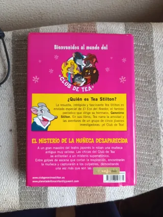 Tea Stilton: ¿De qué trata? Sigue las aventuras del "Club de Tea", cinco amigas que viajan por el mundo resolviendo misterios. Son libros muy famosos por tener letras de colores, olores y muchos dibujos, lo que los hace superdivertidos de leer. Precio 6€ unidad