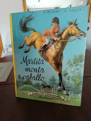 libro infantil antiguo de la famosa serie "Martina" (titulada como "Martita" en algunas ediciones españolas), específicamente el volumen "Martita monta a caballo" de la Colección Campanilla, publicado por la Editorial Juventud. Autores: Gilbert Delahaye (texto) y Marcel Marlier (ilustraciones). Temática: Cuentos infantiles clásicos sobre las aventuras de la protagonista Martina. Valor: Muy buscado por coleccionistas de libros infantiles vintage debido a sus icónicas ilustraciones y relevancia histórica en la literatura infantil europea. Primera edición 1969