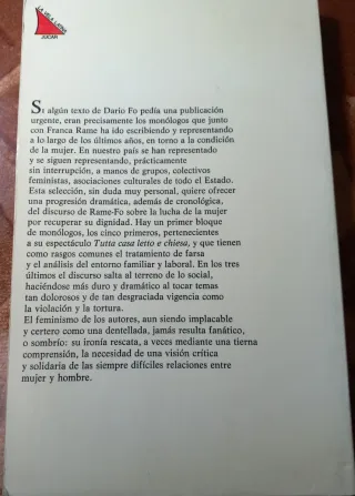 Teatro. Feminismo. Primera edición 1987. Editorial Júcar. 96 págs. Encuadernación: cosida, tapa blanda