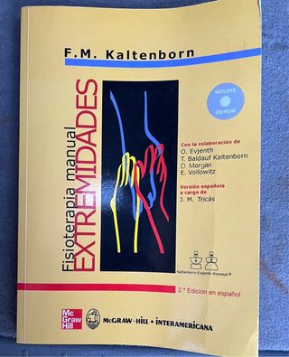 Libro Kaltenborn de fisioterapia manual para extremidades, incluye CD, en buen estado. Muy útil para rehabilitación y terapia manual