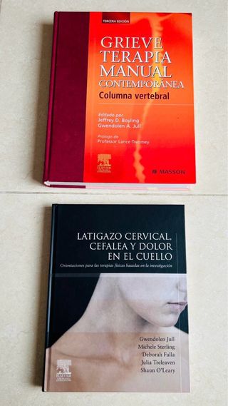 Pack de 2 libros profesionales de fisioterapia y terapia manual, ambos en muy buen estado, como nuevos. Incluye: • Grieve – Terapia Manual Contemporánea. Columna vertebral (3ª edición). Libro de referencia internacional en terapia manual, valoración y tratamiento de la columna vertebral. • Latigazo cervical, cefalea y dolor en el cuello. Enfoque basado en la evidencia para el tratamiento del dolor cervical y cefaleas, muy utilizado en clínica y formación. Libros originales, sin subrayados ni páginas dañadas. Ideales para estudiantes de fisioterapia, osteopatía o profesionales en activo. Se venden juntos Entrega en mano o en envío