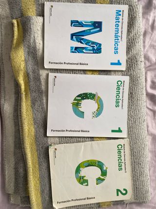 Pack inseparable de 3 libros de Formación Profesional Básica de la editorial Santillana. Incluye: 1. Matemáticas 1 (Módulo Ciencias Aplicadas I): Muy buen estado. 2. Ciencias 1 (Módulo Ciencias Aplicadas I): Muy buen estado. 3. Ciencias 2 (Módulo Ciencias Aplicadas II): Este libro tiene algunas anotaciones a lápiz en el interior (como se puede ver en las fotos), pero está perfectamente utilizable.