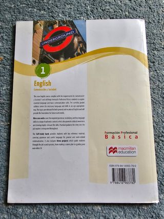 Libro de inglés formación profesional. Rota la contraportada como de ve en la foto. Por lo demás está sin tocar