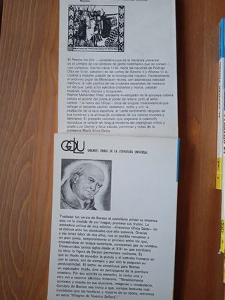 Editorial Kapelusz. Rinconete y Cortadillo, Entremeses, Fuenteovejuna, El Capitán Veneno, Leyendas, El Conde Lucanor, Milagros de Nuestra Señora, Poema del Cid. 2,5 euros cada uno, descuento si se lleva todos.