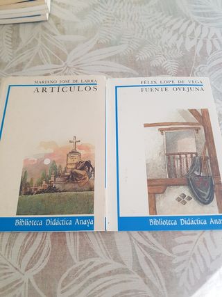 Incluye (se venden sueltos a 5€ cada uno): La Celestina de Fernando de Rojas Austral. La casa de Bernarda Alba de Lorca. Catedra La colmena de Cela. Catedra Fuenteovejuna de Lope de Vega. Catedra Rimas y leyendas de Bécquer. tapa dura El caballero de olmedo y El perro del hortelano de Lope de Vega (tapa dura) Milagros de Nuestra Señora de Berceo. Castalia Gómez de la Serna. El incongruente Alarcón: La comendadora y el clavo + Sombrero tres picos y El capitán veneno (austral) Mihura. Maribel y la extraña familia. Austral
