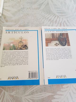 2 libros de bolsillo: Fuenteovejuna de Lopez de Vega y Artículos de Mariano José de Larra.Regalo libro antiguo titulado Secuencia.