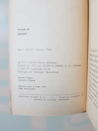 Libro El coronel no tiene quien le escriba, Gabriel García Márquez, Plaza y Janés, 1979.