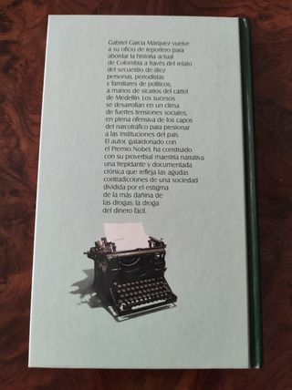 Noticia de un secuestro, del premio Nobel de literatura Gabriel García Márquez, encuadernado en pasta dura.