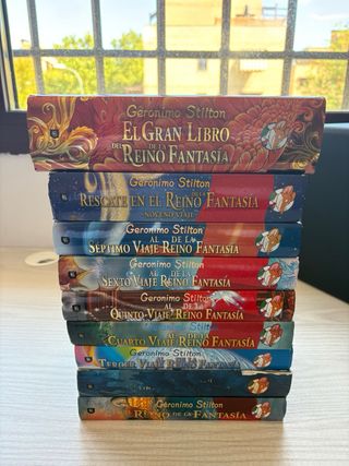 Libros de Gerónimo Stilton de la colección Reino de la Fantasia. Pasta dura. Impecables! Precios: entre 10-15€ Descuento por lotes. Consultad sin compromiso. Titulos: - El Gran Libro del Reino de la Fantasía. - El Gran Regreso del Reino de la Fantasía, - Regreso al Reino de la Fantasía. - Quinto Viaje al Reino de la Fantasía. - Rescate en el Reino de la Fantasía. (Noveno viaje) - El Gran Secreto del Reino de la Fantasía. (Undécimo viaje)