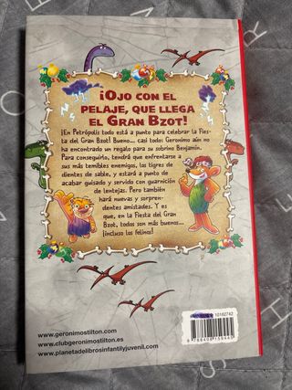 Vendo libro de la famosa colección de Geronimo Stilton, titulado "¡Ojo con el pelaje, que llega el Gran Bzot!". Es el volumen ideal para jóvenes lectores que aman la aventura y la historia. Un viaje en el tiempo a la Edad de Piedra! En esta aventura, Geronimo Stiltonut se enfrenta a un invierno terrible y a la amenaza del Gran Bzot. Un libro muy visual, divertido y fácil de leer gracias a sus famosas letras de colores y formas.