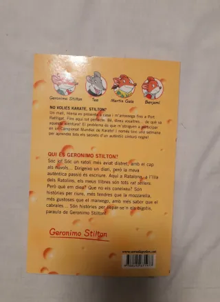 Precio por unidad: 4€. ISBN: 9788408149750 → Mi nombre es Stilton, Geronimo Stilton (1, español) ISBN: 9788408151289 → En busca de la maravilla perdida (2, español) ISBN: 9788408157533 → Un disparatado viaje a Ratikistán (5, español) ISBN: 9788408153979 → Cuatro ratones en el salvaje oeste (27, español) ISBN: 9788497088282 → El misteriós ladre de formatges (36, catalán) ISBN: 9788492671977 → No volies Karate, Stilton? (37, catalán) ISBN: 9788408224921 → ¡Ay, ay, ay, qué aventura en Hawái! (80, español) ISBN: 9788418135811 → No volies mel, Stilton? (82, catalán) ISBN: 9788408136859 → Desafió galáctico en el último penalti (4, español