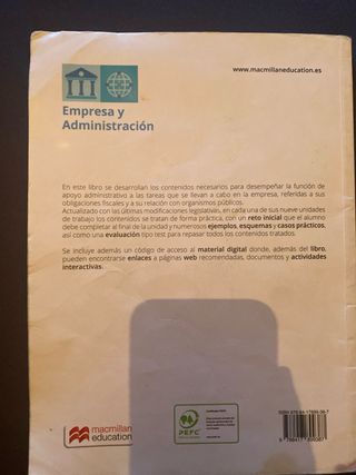 Libro macmillan empresa y administración sin estrenar. Incluye acceso al libro digital en Blink .nuevo nunca se llegó a usar .