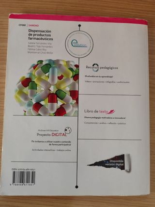 Libro Dispensación de productos farmacéuticos para ciclo formativo grado medio de Auxiliar de Farmacia. Editorial Mac Graw Hill ISBN: 978-84-486-1165-1 Tengo más libros del CFGM SANIDAD de Técnico de Farmacia y Parafarmacia.