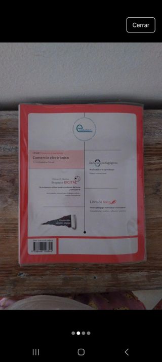 Libro de texto de Ciclo Formativo de Grado Medio (CFGM), módulo de Comercio electrónico, rama de Comercio y Marketing. 📚 Autor: Santiago Hurtadoyen Pascual 🎓 Editorial: McGraw-Hill Education 🛒 Contenidos sobre e-commerce, tiendas online, marketing digital y ventas por Internet 📌 Estado: usado, en buen estado general (ver fotos) 💰 Precio: 5 € 📦 Envío por Wallapop 📍 Entrega en mano posible Ideal para estudiantes de FP o para repaso. 📦 Descuento si compras varios libros de FP 😊.