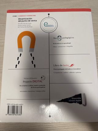 Libros de texto para el Ciclo Formativo de Grado Medio (CFGM) de Comercio y Marketing. - Título: Dinamización del punto de venta. - Editorial: McGraw Hill. - Autores: Ana M. Hervás Exojo, Aurea Campo Varela, M. Teresa Revilla Rivas. - Incluye contenido sobre Comercio y Marketing. 40€ los 4 libros