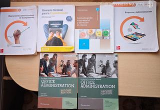 Student's book y workbook Office Administration, Grado Medio Gestión Administrativa. Están un poco escritos con lápiz