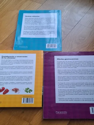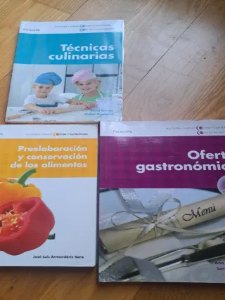 Libros para un grado medio de cocina y gastronomía. Están usados, aunque en buen estado, con apuntes y subrayado en algunas páginas.