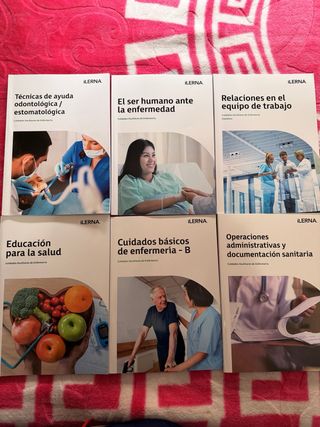 Libros para grado medio Técnico en Cuidados de Auxiliar de Enfermería, Centro de formación Ilerna FP del 2º semestre y sus 6 asignaturas, son a color y estan en perfecto estado. Son los mas recientes