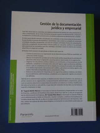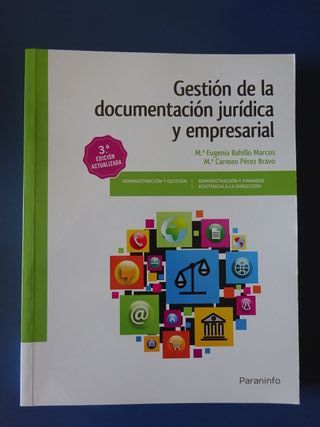 Este libro desarrolla los contenidos del módulo profesional de Gestión de la Documentación Jurídica y Empresarial, de los Ciclos Formativos de grado superior de Administración y Finanzas y de Asistencia a la Dirección. Ed. Paraninfo. ISBN 978-84-283-3945-2. Sin Usar. Entrega en mano en la zona Azucarera - Arrabal de Zaragoza ó envío por Wallapop