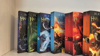 Saga completa de Harry Potter en inglés. Están en buen estado. Sin leer y encuadernados para una mejor protección de las portadas. Con algunas manchas de humedad y alguna letra del lomo borrada.