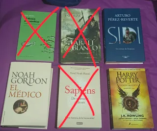 Vendo los siguientes libros juntos o por separado: Harry Potter y el legado maldito - J. K. Rowling, John Tiffany y Jack Thorne: 8€ (precio original: 18€) El deseo de cambiar - traducción de Javier Sáez del Álamo: 8€ (precio original: 19€) VENDIDO 📦 Sapiens, de animales a dioses - Yuval Noah Harari: 9€ (precio original: 19,90€) VENDIDO 📦 El médico - Noah Gordon: 10€ (precio original: 22€) El caballero del jabalí blanco - José Javier Esparza: 10€ (precio original: 21,90€) VENDIDO 📦 Sidi - Arturo Pérez-Reverte: 10€ (precio original: 22,90€) Precios negociables! 🙂↕️
