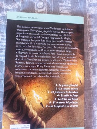 Libro 2, harry Potter y la cámara secreta, en tapa blanda