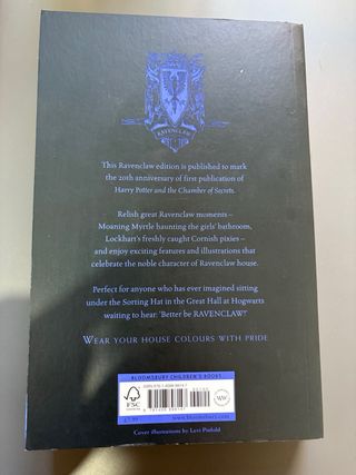 Libro de Harry Potter edición Ravenclaw. Compré este libro anteriormente en Wallapop. Está en perfecto estado, se ha ulilizado para lectura de entretenimiento y estudiar inglés. No hay nada marcado.