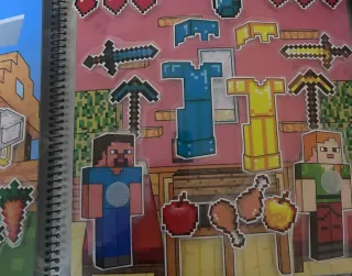 Libro Minicraft para desarrollar su imaginacion y creatividad, escenarios interactivos con sus personajes favoritos, granja con animales, ciudad de superheroes con coches y trajes, el Nether con lava y tesoros, cuevas con tnt y montruos, juego divertidisimo con los personajes de Minicraf.