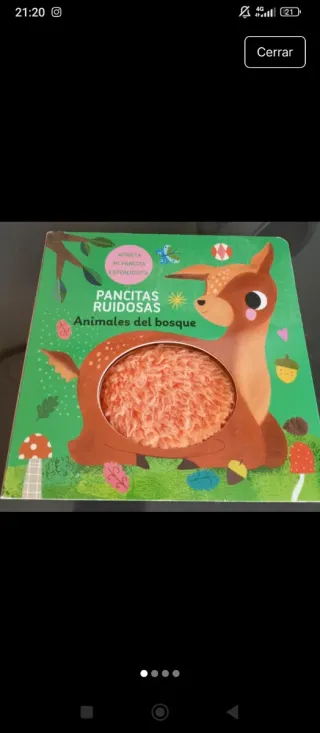 Cuentos infantiles: - vehículos ruidosos(faltaría ponerle pila) -mi libro suena,la granja( faltaría ponerle pila) -jungle animals -mundo animal - el bebé toca la granja -cucu-tras de la selva -la casa de Mickey mouse:sigue a ese perro(faltaría pila)