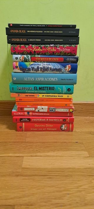 Lote de 15 libros infantiles en español, hay libro para niños de hasta 12. A parte de estos, incluye un libro corto en ingles que viene bien si estás aprendiendo. Estoy abierta a negociar el precio. También puedo proporcionar fotos del resto de libros individualmente, no he publicado más debido al límite.