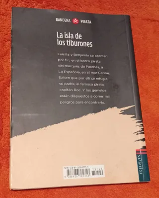 Vendo el libro "La isla de los tiburones" del autor Alain Surget y la editorial Edelvives. Luisilla y Benjamín se acercan por fin, en el barco pirata del marqués de Parabás, a La Española, en el mar Caribe. Saben que por allí se refugia su padre, el famoso pirata capitán Roc. Y los gemelos están dispuestos a correr mil peligros para encontrarlo. #libro #lectura #pirata #tiburón #isla #alain #surget #edelvives
