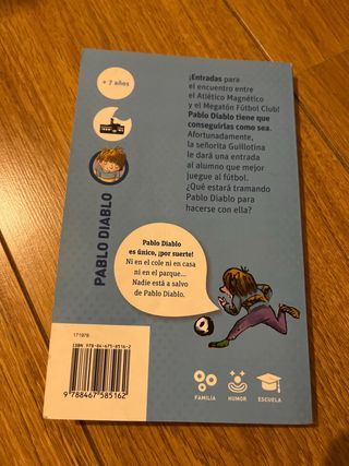 Un partidazo de fútbol entre el Atlético Magnético y el Megatón Fútbol Club tiene ilusionada a toda la clase de Pablo Diablo. Este no está dispuesto a perdérselo y para lograrlo hará lo que sea. ¿Cómo se las ingeniará nuestro amigo para asistir al partido? Una divertida novela que incluye cuatro historias sobre las vivencias de un niño muy, muy pícaro. 104 páginas