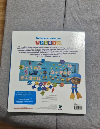Este simpático libro ayudará al niño a reconocer los números, a contar y a realizar sencillas operaciones matemáticas de sumas y restas. Gracias a las piezas que se encajan en las páginas, el niño realizará un aprendizaje interactivo y adquirirá sus primeras habilidades matemáticas. Las divertidas escenas de Pocoyó y sus amigos harán que aprender sea un juego.