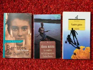 Libros ideales para jóvenes lectores o para ampliar biblioteca juvenil. Se venden juntos en pack para facilitar la compra. Incluye: - Akuna Matata: La sombra del Kilimanjaro - Cuatro gatos - Barrotes de bambú Entrega en Alicante, zona centro. Envío disponible.