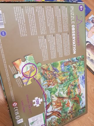 Pack de dos libros infantiles. Heroes y villanos Las mil y una noches Puzle sin abrir de dinosaurios djeco. Con librito explicando sus características .